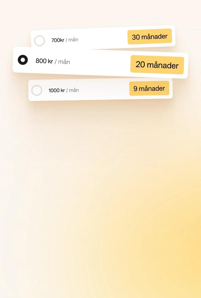 Betala av snabbare? Eller lägsta möjliga månadsbetalning? Du bestämmer. Dessutom kan du ansöka om betalfria månader.